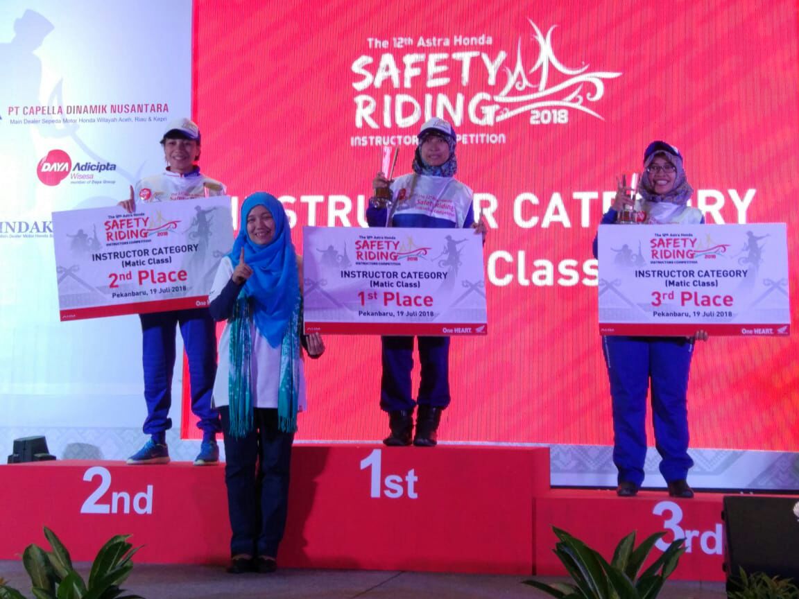 Kompetisi keterampilan berkendara antar instruktur safety riding Honda ini diselenggarakan pada 17-19 Juli 2018 di Pekanbaru, Riau.