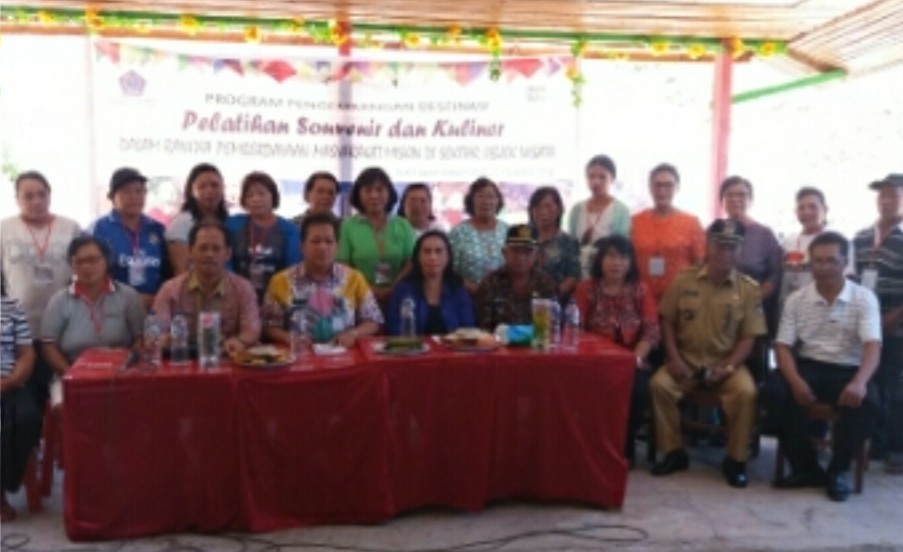 Masyarakat di sekitar objek wisata Bukit Kasih Kanonang Kabupaten Minahasa, diberdayakan melalui pelatihan pembuatan souvenir dan kuliner.