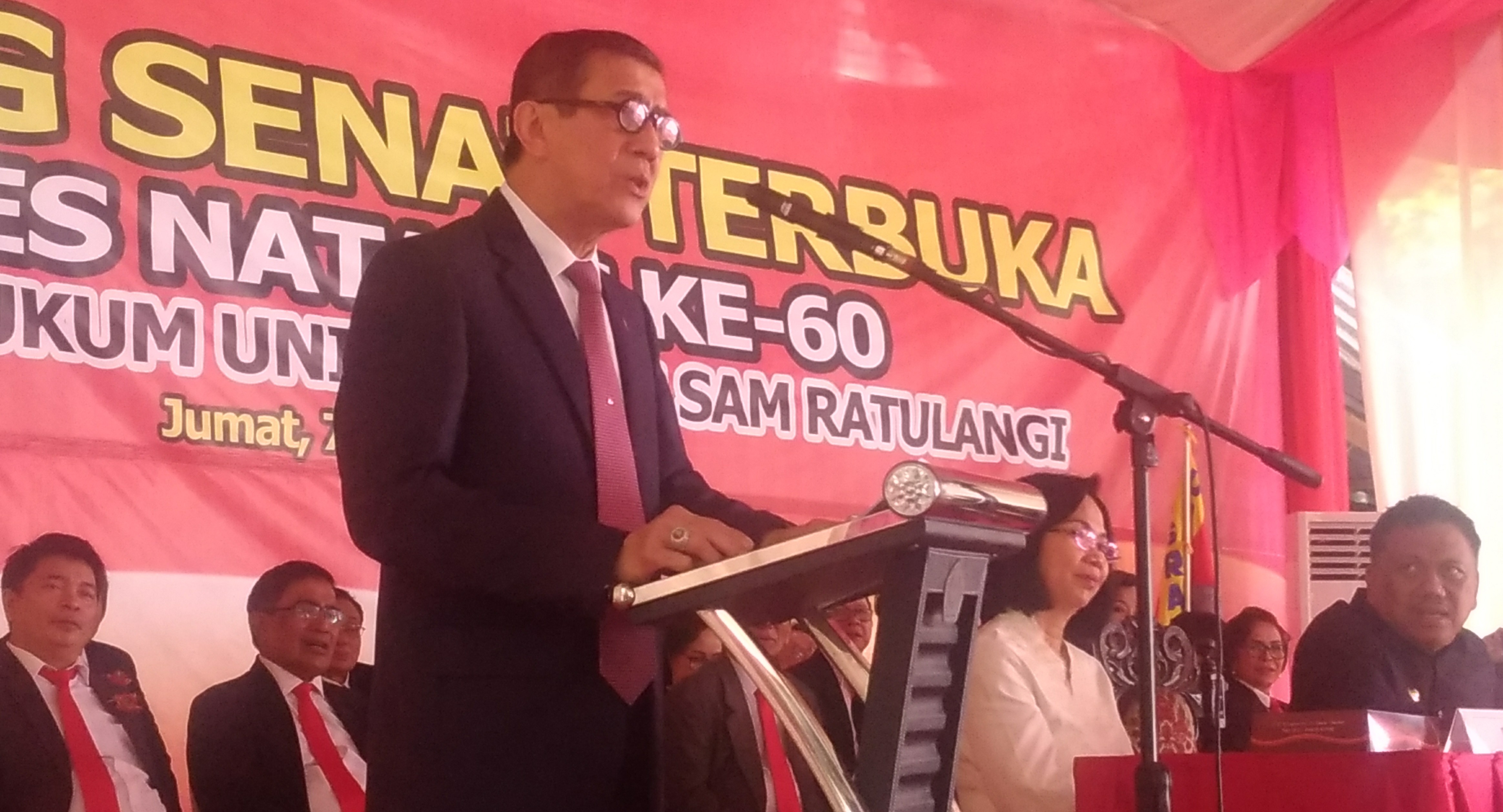 “Negara-negara maju di dunia karena hukum dan peraturan perundang-undangan yang dijalankan baik, ditaati dengan baik. Demikian.juga dengan bisnis yang masuk, yang didasarkan pada perizinan. Itulah sebabnya peraturan perundang-undangan menjadi bagian yang penting,” ungkapnya di Sidang Senat Terbuka Dies Natalis ke 60 tahun FH Unsrat.