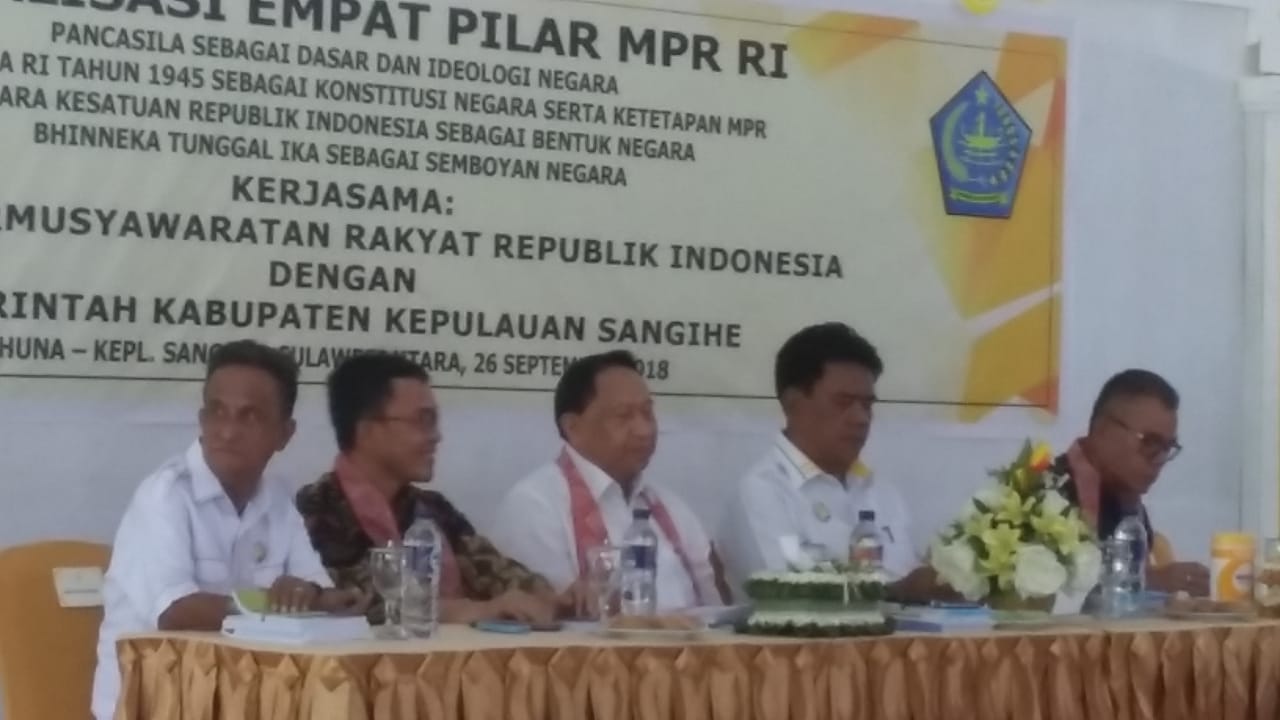 “Datang ke Sangihe, saya tersentuh kembali saat saya menjabat gubernur. Sangihe wilayah kepulauan dan benteng Pancasila. Jadi soal 4 pilar sudah sejak dulu kita inplementasikan,” katanya seraya menambahkan kesetiaan Sangihe pada NKRI tidak perlu di ragukan.