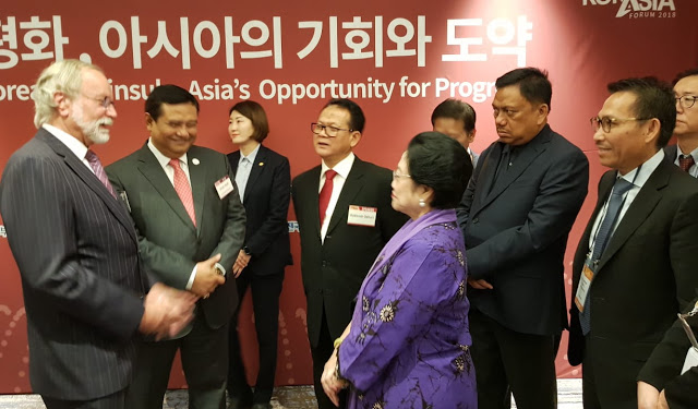 Gubernur Sulawesi Utara Olly Dondokambey SE mendapat kepercayaan mendampingi Presiden Republik Indonesia ke-5, Megawati di pertemuan internasional, The KOR-Asia Forum 2018 di Hanra Hall, Seoul Dragon City Hotel, Yongsangu, Korea Selatan, Rabu (07/11/2018).