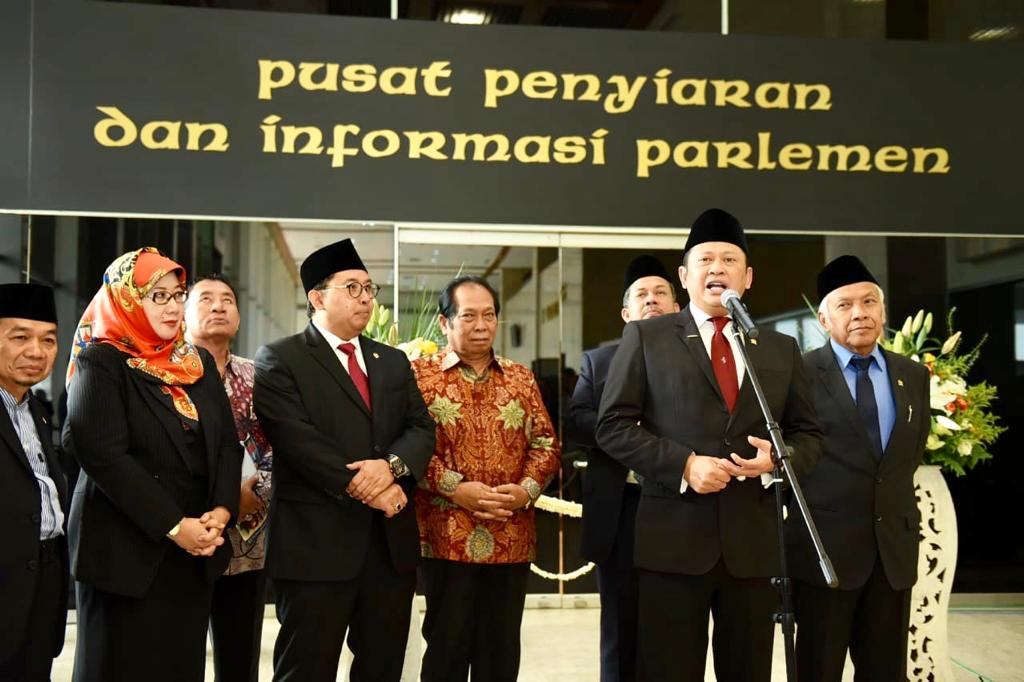 “Peresmian Pusat Informasi dan Penyiaran Parlemen akan menampilkan wajah DPR RI yang sesungguhnya. Ruangan ini menjadi Big CCTV, rakyat bisa melihat berbagai sidang dari Komisi I sampai Komisi XI serta berbagai alat kelengkapan dewan lainnya. Wartawan juga tak perlu repot-repot naik turun ke ruang sidang, cukup nongkrong di ruangan ini, semua sidang bisa langsung diliput,” ujar Bamsoet saat meresmikan Pusat Informasi dan Penyiaran Parlemen, di Gedung Nusantara I DPR RI, Jakarta, Senin (07/01/19).