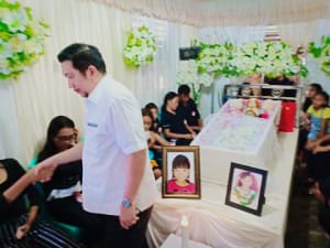 Wakil Walikota Mor Dominus Bastiaan SE, menghadiri ibadah pemakaman Pricilla Padang (Cilla) gadis berusia 4 tahun yang menjadi korban Demam Berdarah Dengue (DBD) di wilayah Kelurahan Teling Bawah Kecamatan Wenang, Kamis (24/1/2019).