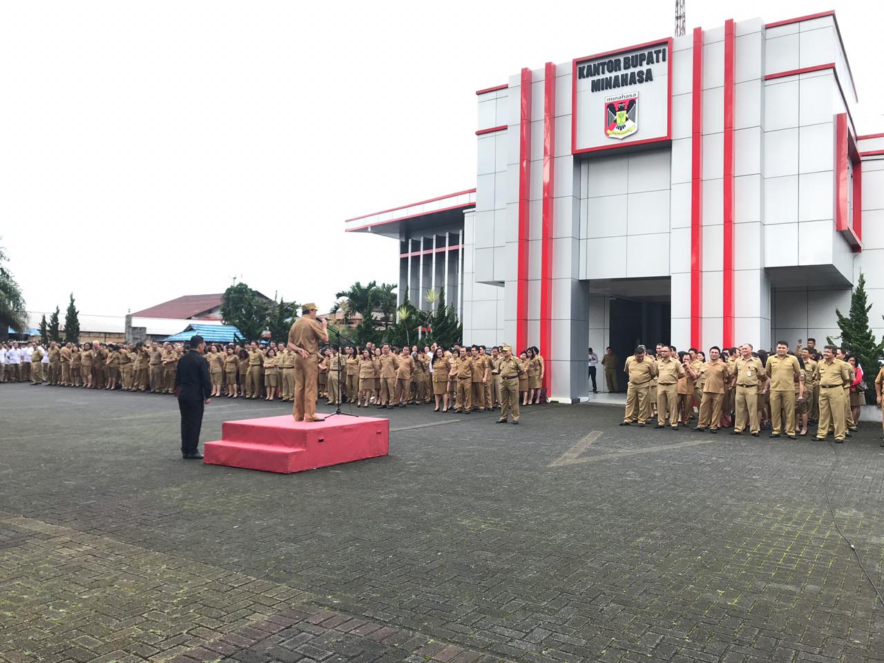 Apel awal bulan Aparatur Sipil Negara (ASN) di lingkungan Pemerintah Kabupaten Minahasa digelar Senin (4/2/2019).