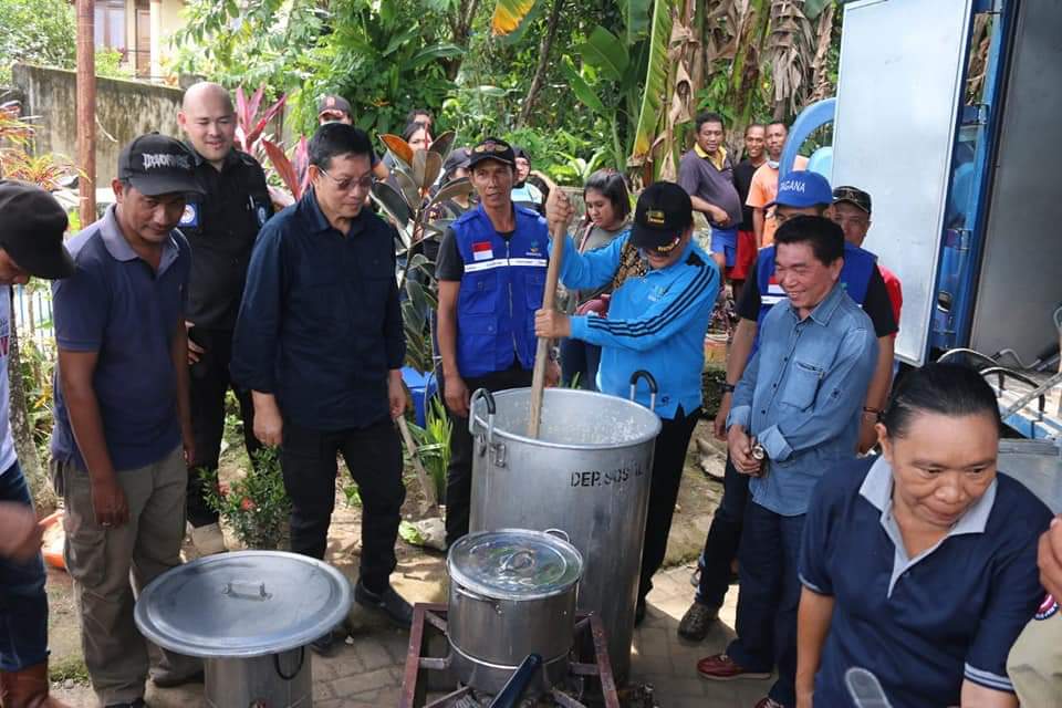 Pada kesempatan itu, Walikota DR. Vicky Lumentut bersama isteri Prof. Paula Runtuwene ikut berjibaku di dapur umum menyiapkan logistik untuk korban banjir.