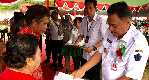 Penyerahan dilakukan secara simbolis melalui perwakilan warga penerima sertipikat di Likupang, Rabu (13/2/2019) sore.
