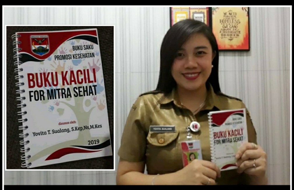 Mitra, SULUTREVIEW – Bagian dari proyek perubahan Diklat PIM IV, Kepala Seksi Promosi Kesehatan dan Pemberdayaan Masyarakat dari Dinas Kesehatan (Dinkes) Minahasa Tenggara (Mitra) Yovita Sualang, Promosikan kesehatan lewat buku saku.