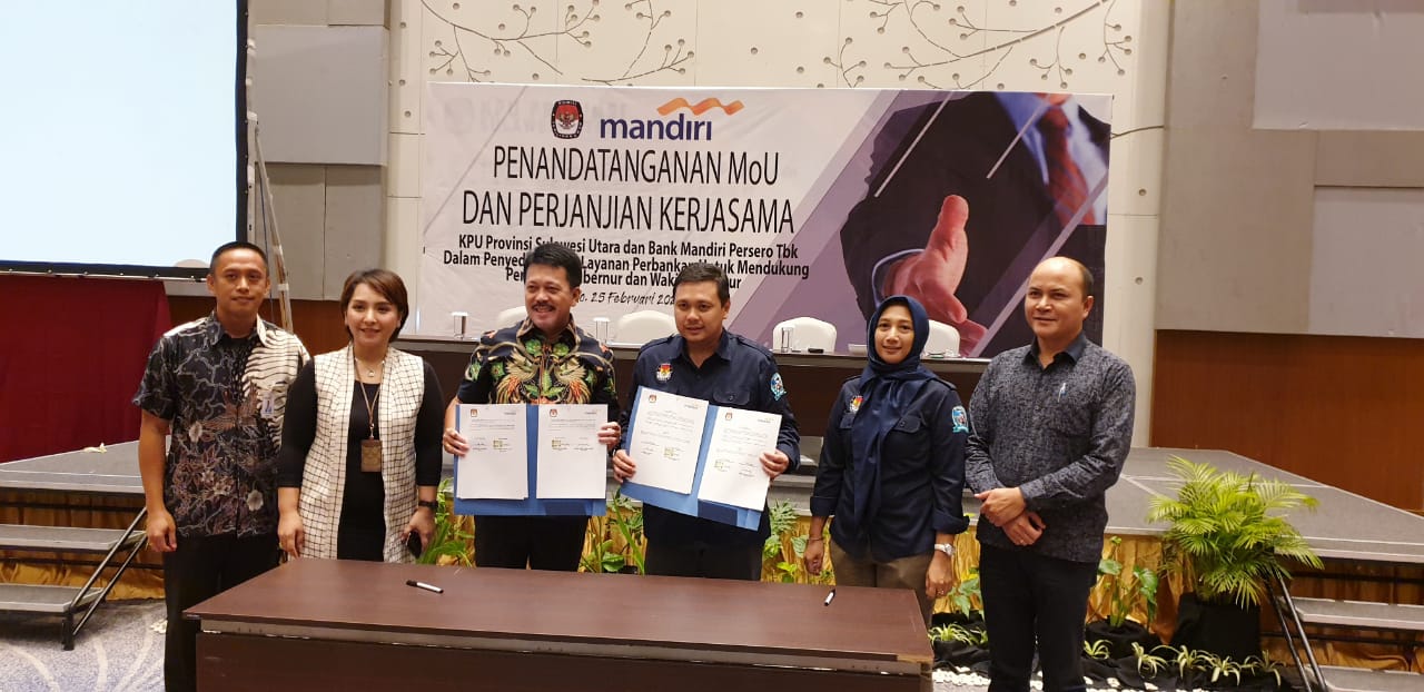 Jelang dimulainya tahapan Pemilihan Kepala Daerah (Pilkada), Komisi Pemilihan Umum (KPU) Sulawesi Utara (Sulut) menggandeng Bank Mandiri (Persero)