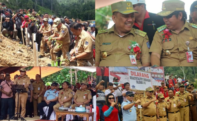 Setelah sambutan, Gubernur bersama Bupati dan unsur Forkompimda Sulut dan Minahasa Tenggara melakukan pencanangan penanaman pohon dan pemasangan papan informasi larangan untuk melakukan atifitas pertambangan diwilayah perkebunan alason dan sekitarnya. (*/Jul)