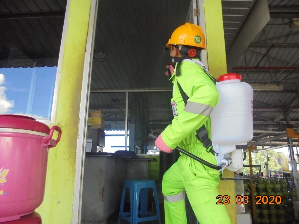 Area yang disemprot disinfektan adalah area yang sering dikunjungi dan pusat aktifitas seperti gudang LPG dan kantor agen. Tidak lupa armada yang digunakan untuk mengangkut tabung juga didisinfeksi.