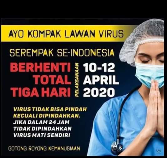 Sejak hampir tiga hari terakhir, beredar dua buah flyer berisi imbauan untuk berhenti total tiga hari terhitung 10-12 April 2020.