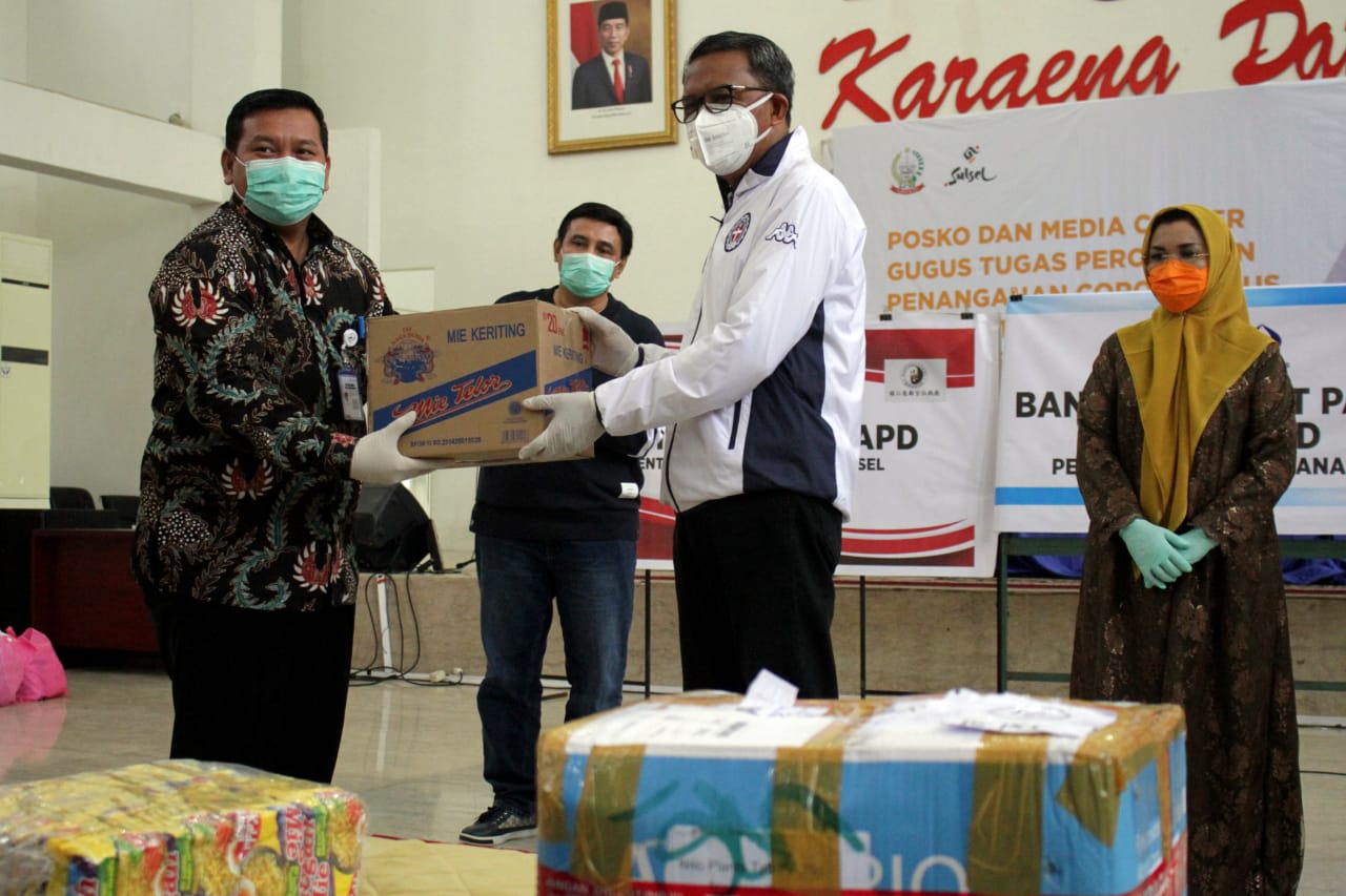 Bantuan yang diterima langsung oleh Gubernur Sulawesi Selatan HM Nurdin Abdullah ini berupa 2.300 paket sembako dan 150 Alat Pelindung Diri (APD).