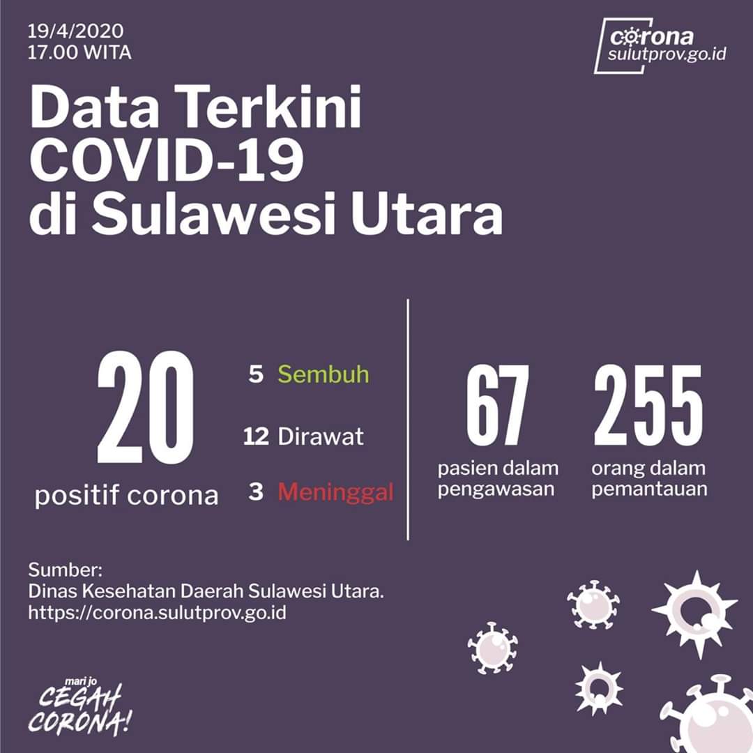 Untuk jumlah ODP tercatat 255 orang. Selanjutnya pasien positif masih 20 orang. Dengan rincian sebanyak 12 orang dirawat di RSUP Kandou dan 5 orang di RSUD Wolter Mongisidi Teling.