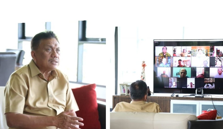 Gubernur Sulawesi Utara Olly (Sulut), Dondokambey melakukan video teleconference (vicon) penanganan covid-19 bersama Ketua Umum PGI Pdt Gomar Gultom dan seluruh pengurus PGI, Selasa (21/4/2020).