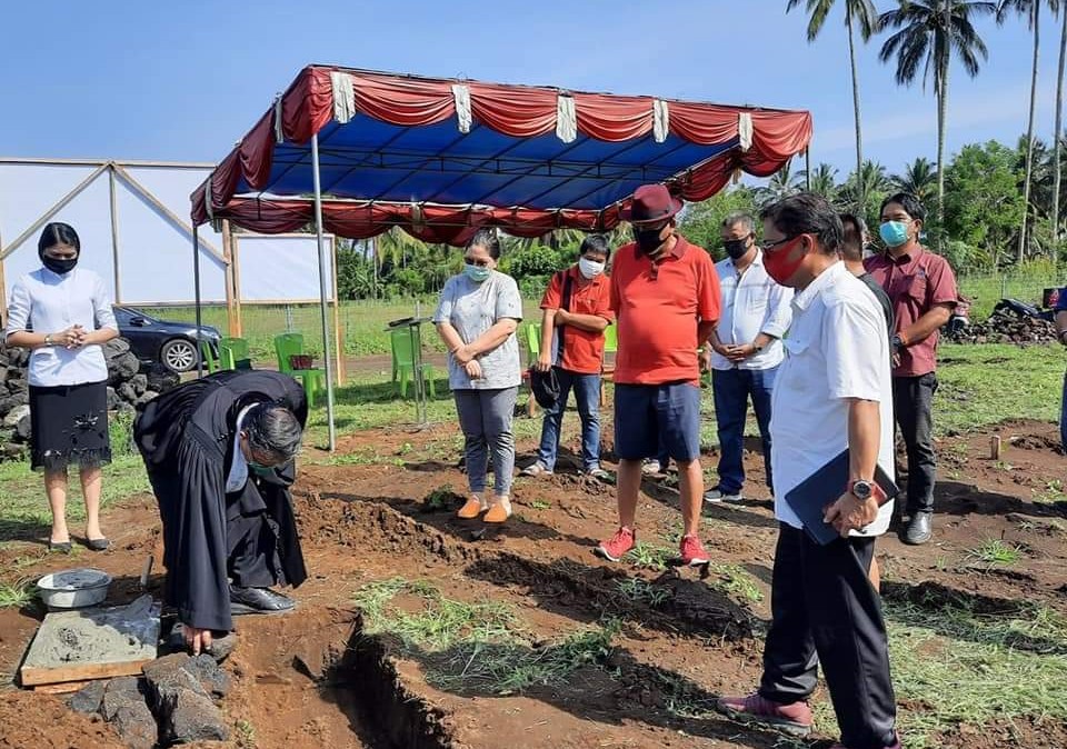 Gubernur Sulawesi Utara (Sulut), Olly Dondokambey didampingi istri tercinta Ketua TP PKK Sulut, Rita Tamuntuan menghadiri ibadah peletakkan batu pertama, pembangunan gedung GMIM Rut Suwaan Wilayah Kalawat Dua, Kabupaten Minahasa Utara, Jumat (24/4/2020).