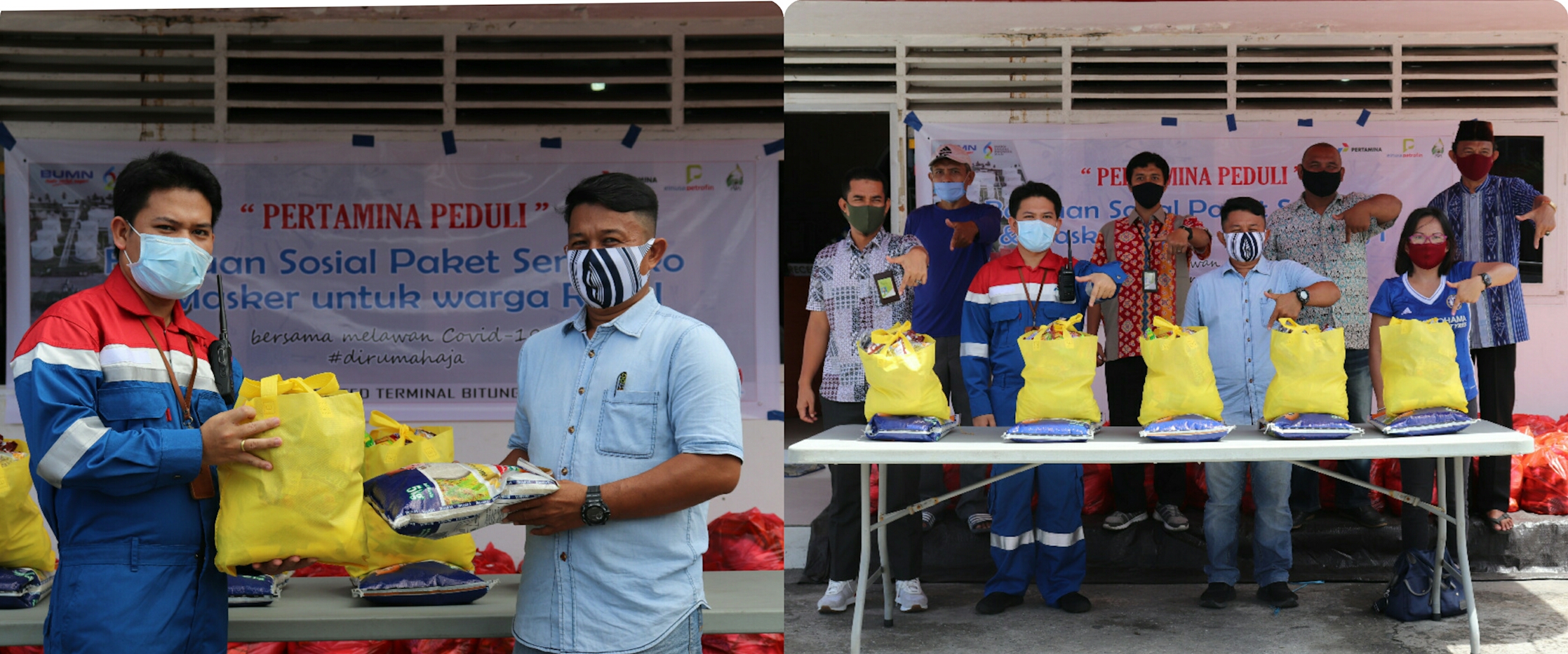 Seperti halnya yang dilakukan oleh pihak perwakilan PT Pertamina di Sulut yaitu Terminal Bahan Bakar Minyak (TBBM) di Kota Bitung. Dimana pada Rabu (20/05/2020) pihak Pertamina TBBM melakukan aksi sosialnya yaitu dengan membagi-bagikan 400 paket Sembako dan masker kepada masyarakat sekitar TBBM Bitung yang berlokasi di wilayah Bitung Barat Kecamatan Maesa ini.
