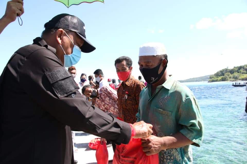 Gubernur Olly bersama Wakil Gubernur Steven OE Kandouw dan jajaran Forkopimda Sulut turun langsung menyisir daerah kepulauan di Kabupaten Minahasa Utara untuk memberikan bantuan paket bahan pokok berupa 5 kilogram beras, 10 bungkus mie instan, 1 liter minyak goreng, 3 kaleng ikan siap saji dan 5 buah masker, pada Selasa (26/5/2020).