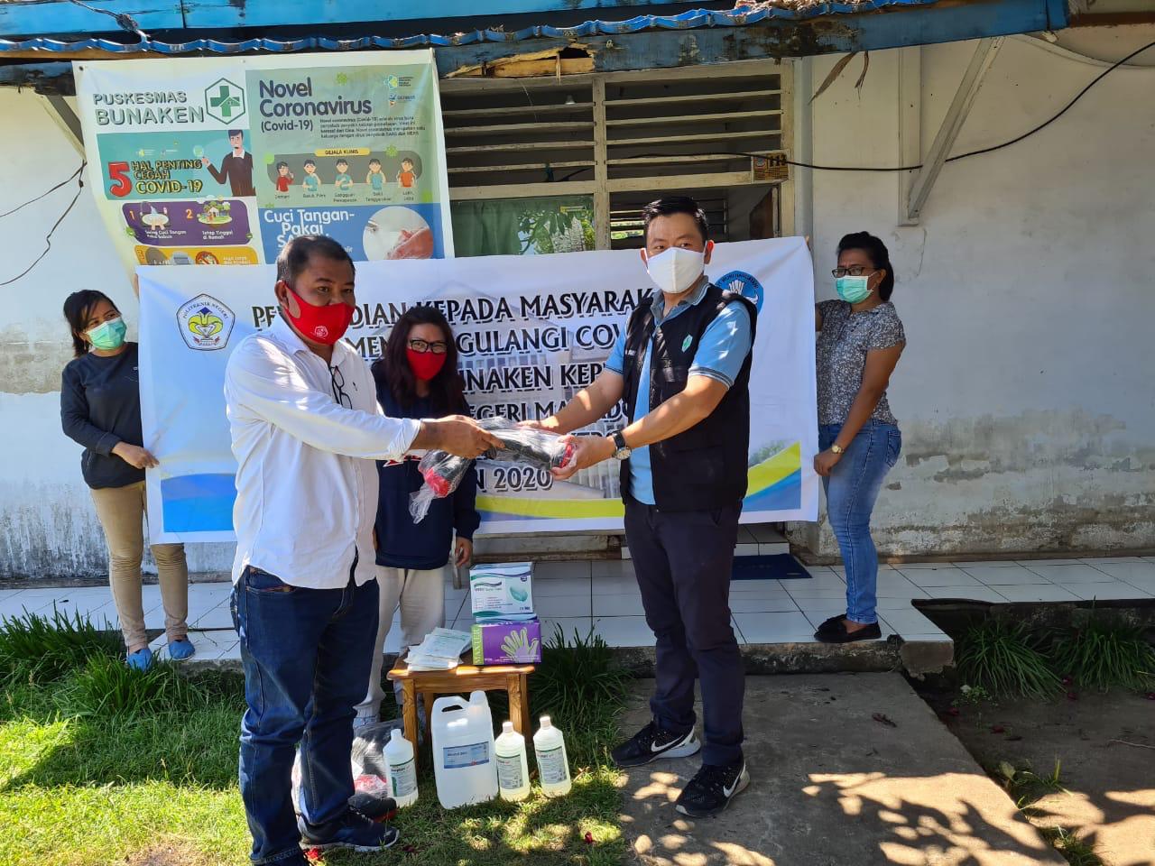 Manado, SULUTREVIEW – Jurusan Teknik Elektro Politeknik Negeri Manado (Polimdo) salurkan bantuan alat pelindung diri (APD) kepada tenaga medis dalam penanganan virus Corona (Covid-19) di Bunaken Kepulauan, Kota Manado.