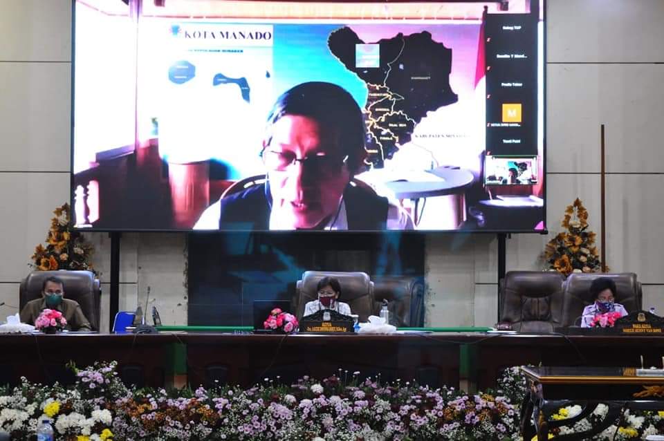 Manado, SULUTREVIEW – Wali Kota Manado, Dr Ir GS Vicky Lumentut SH MSi DEA, mengikuti sidang Paripurna DPRD Kota Manado melalui Video Conference (Vidcon) dengan menggunakan aplikasi zoom.