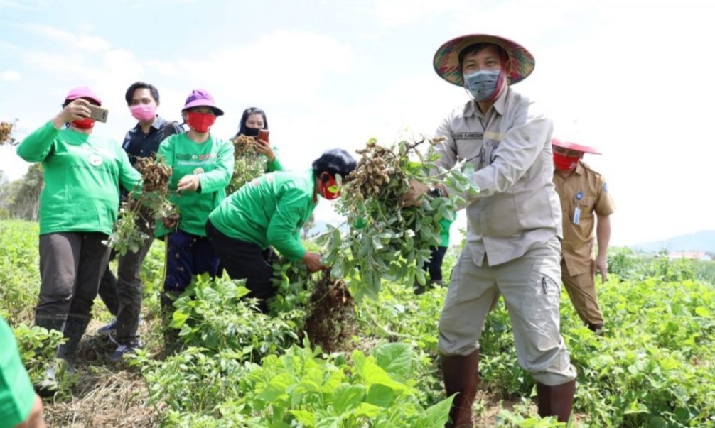 Pada kesempatan itu, wagub juga melangsungkan panen kacang merah serta menyalurkan bansos kepada masyarakat yang terdampak Covid- 19 di Boltim.