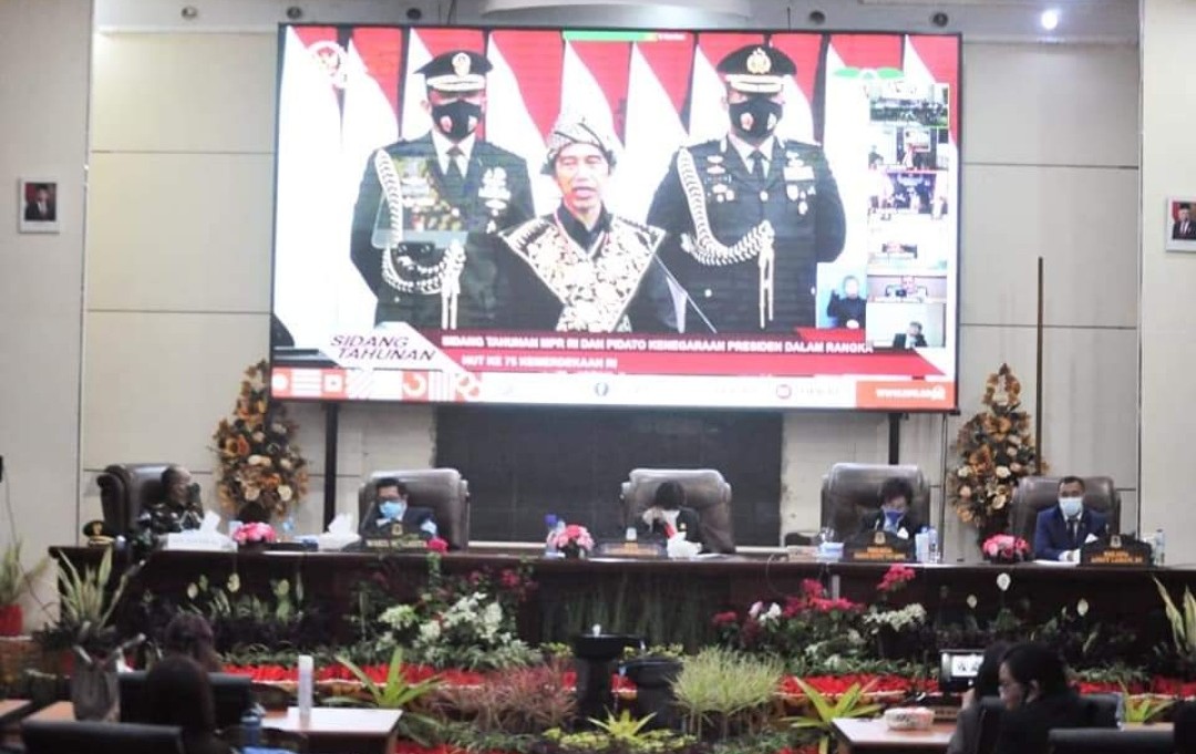 Paripurna ini dilakukan secara virtual. Pimpinan dan anggota DPRD Kota Manado menonton pidato Presiden RI di layar LCD di ruang rapat, bersama Wakil Walikota Manado, Mor D Bastiaan, Forkopimda Kota Manado, Sekretaris Daerah Kota Manado, Micler CS Lakat.