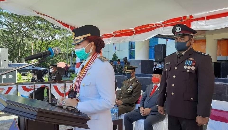 Pelaksanaan HUT ke-75 Kemerdekaan RI di Kabupaten Minut berlangsung khidmat, di mana Bupati Minut Vonnie Anneke Panambunan (VAP) bertindak sebagai inspektur upacara.
