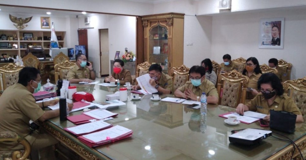 Sekdaprov Sulawesi Utara Edwin Silangen memimpin Rapat Evaluasi Pengelolaan Anggaran Covid-19 Tahun 2020 (APBN- APBD) di Kantor Gubernur Sulut, Selasa (8/9/2020).