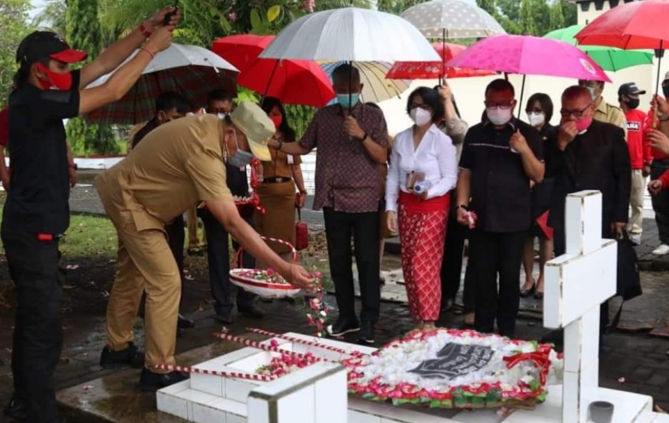 Gubernur Olly Dondokambey melakukan ziarah ke makam Gubernur Sulut periode 1985-1995, Cornelis John Rantung di Taman Makam Pahlawan Kairagi Manado.