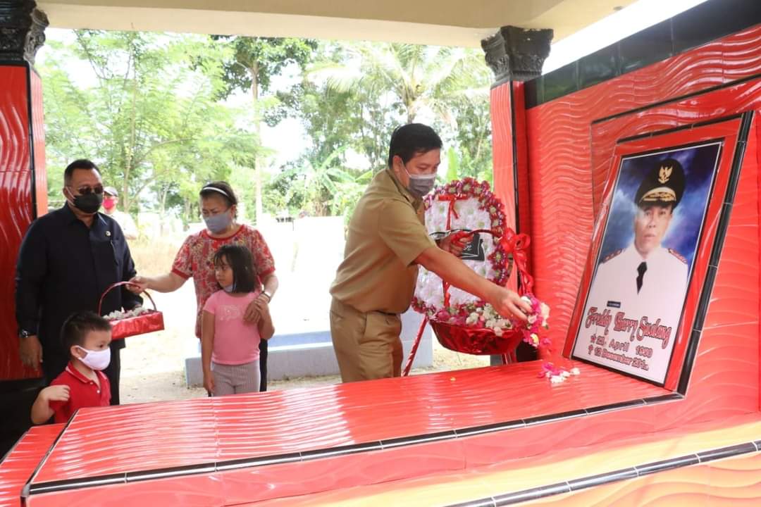 Di makam Sualang, Wagub Kandouw dan Wabup Dondokambey disambut istri almarhum, Ny. Sus Sualang Pangemanan, S.Pd dan anak Richard Sualang serta cucu-cucu.(engel)