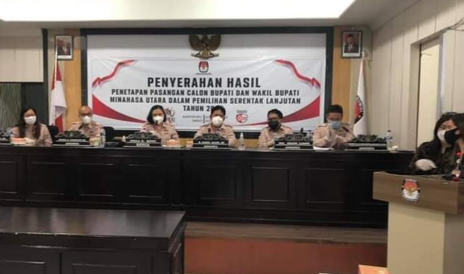Penetapan tiga paslon tertuang dalam Surat Keputusan KPU Minut Nomor : 259/PL.02.3-Kpt/7106/Kab/IX/2020 dalam rapat pleno KPU Minut yang dipimpin ketua Stella Runtu didampingi Anggota Darul Halim SH, Anggota Hendra Lumanauw MA, Anggota Dikson Lahope SH dan, Anggota Robby Manoppo SH Mkn.