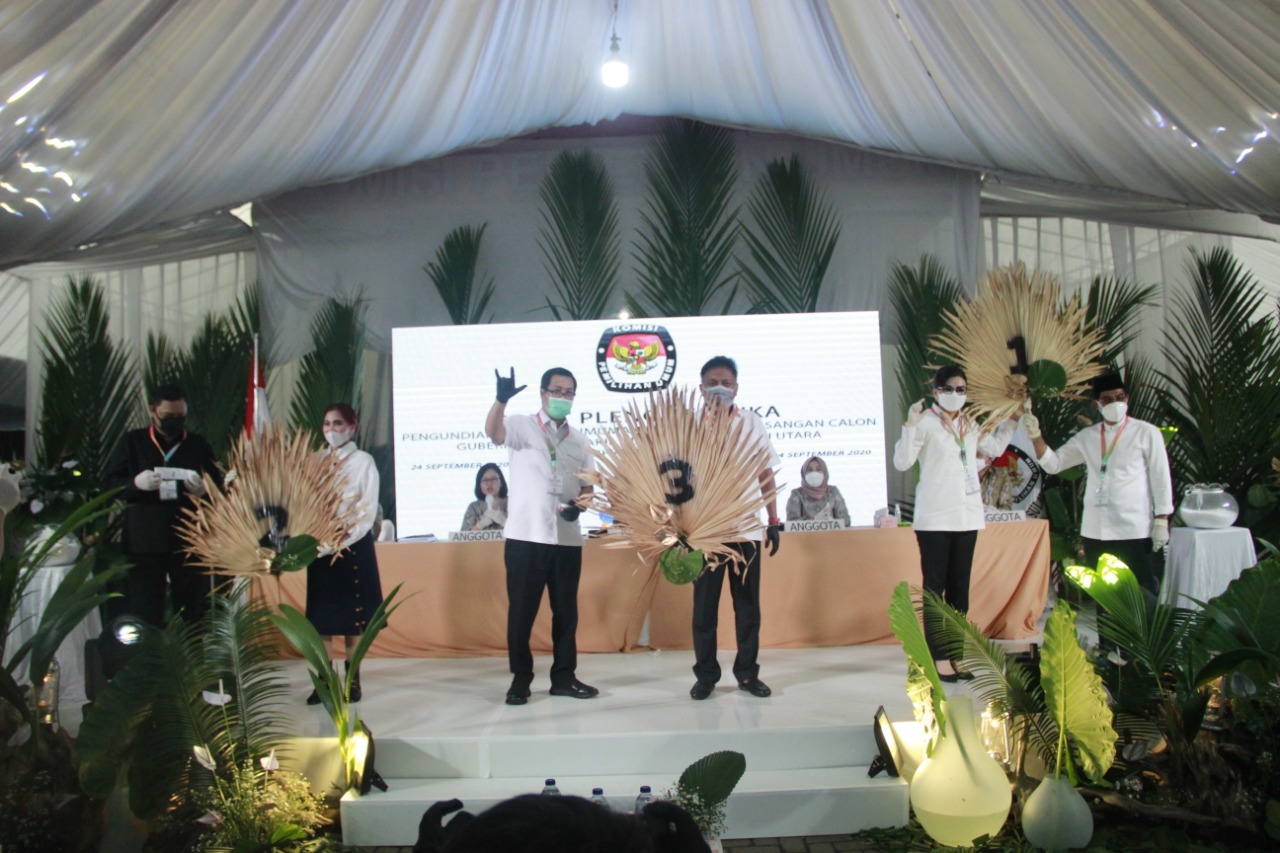 Manado, Sulutreview.com – Komisi Pemilihan Umum (KPU) Provinsi Sulawesi Utara (Sulut), melaksanakan rapat pleno terbuka pengundian nomor urut pasangan calon (paslon) dalam Pemilihan Gubernur dan Wakil Gubernur Sulut, Kamis (24/9/2020).