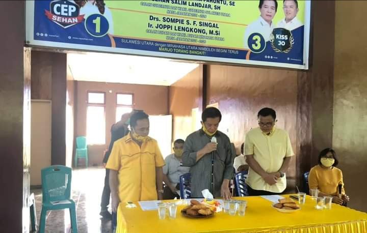 Pelantikan dihelat di sekretariat tim pemenangan KISS-JO dan CEP-SSL di kelurahan Sarongsong 2 kecamatan Airmadidi Minut. Mereka akan bertugas memenangkan pasangan Singal-Lengkong sebagai calon Bupati dan wakil Bupati Minut serta Christiany Eugenia Paruntu dan Sehan Salim Landjar SH (KISS-JO dan CEP-SSL) sebagai calon Gubernur dan wakil gubernur Sulut dipilkada 9 Desember 2020 nanti.