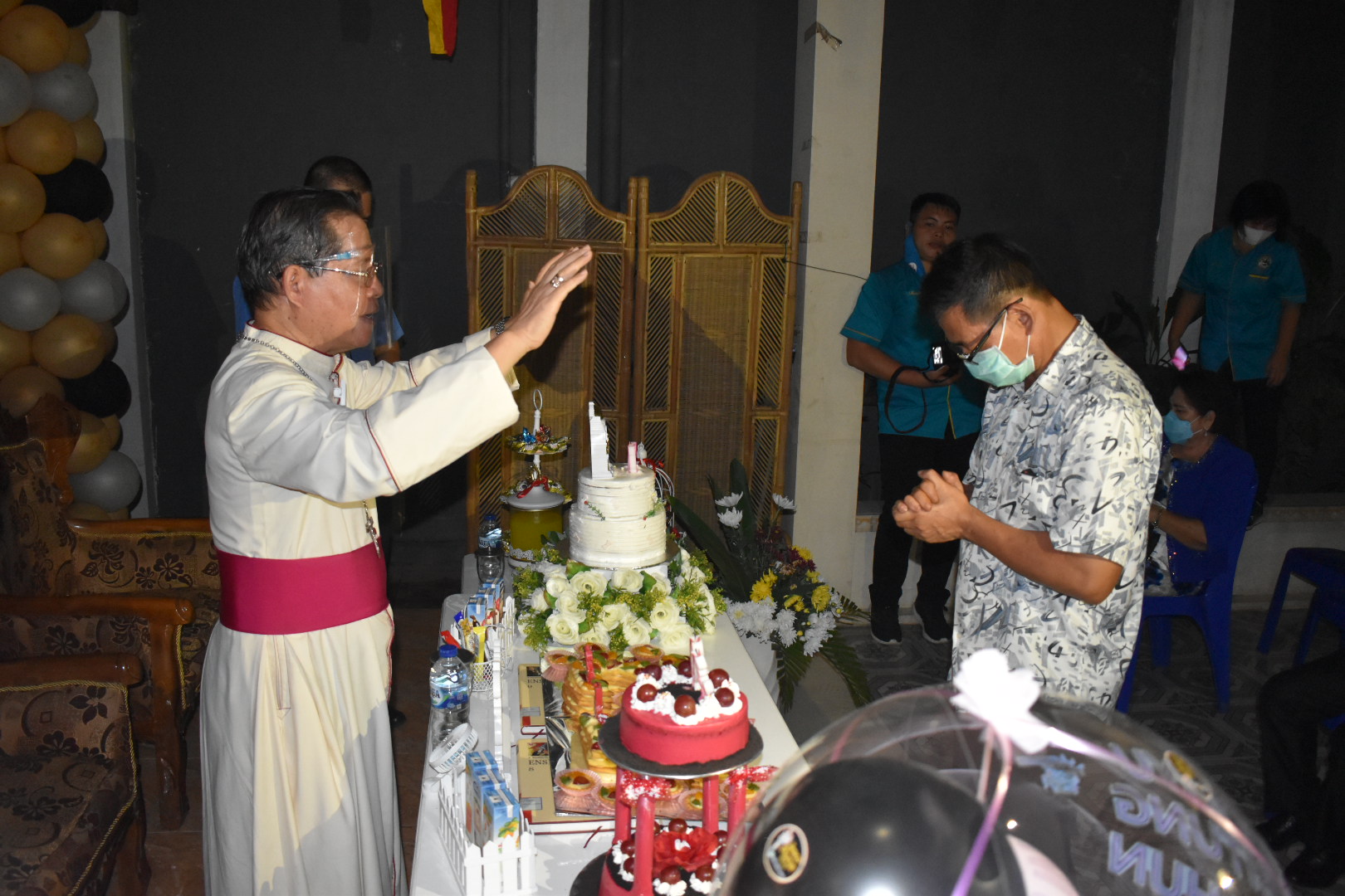 Usai perayaan HUT, tiba-tiba Uskup langsung meminta Hengky Honandar SE untuk dapat berdiri di depanya dan langsung mendoakannya lebih khusus terkait rencana Hengky Honandar yang akan maju di Pilkada Bitung bersama Calon Walikota Ir Maurits Mantiri.