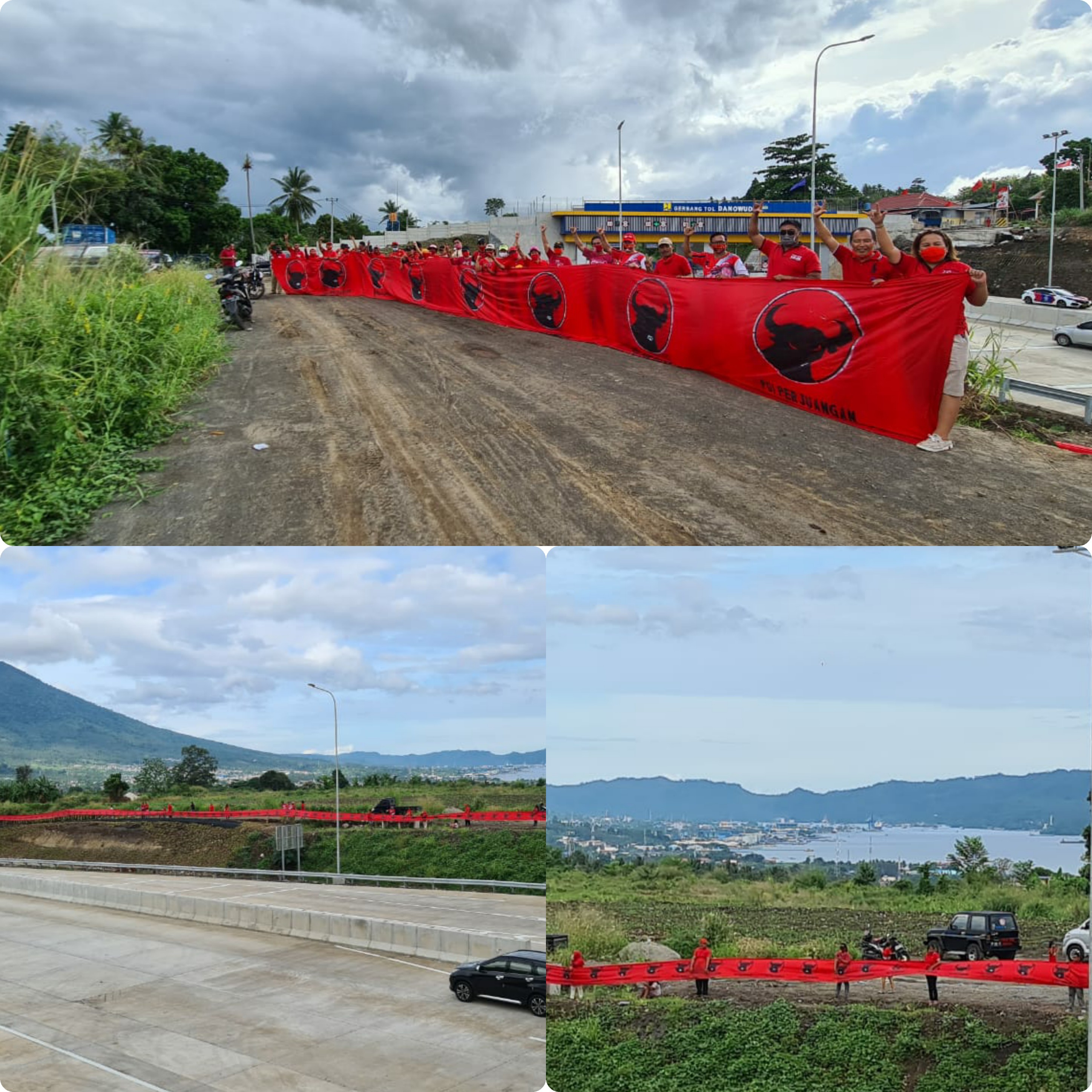 Aksi Relawan Tulus for MM-HH dan ODSK membentangkan bendera PDI Perjuangan di Jalan Tol