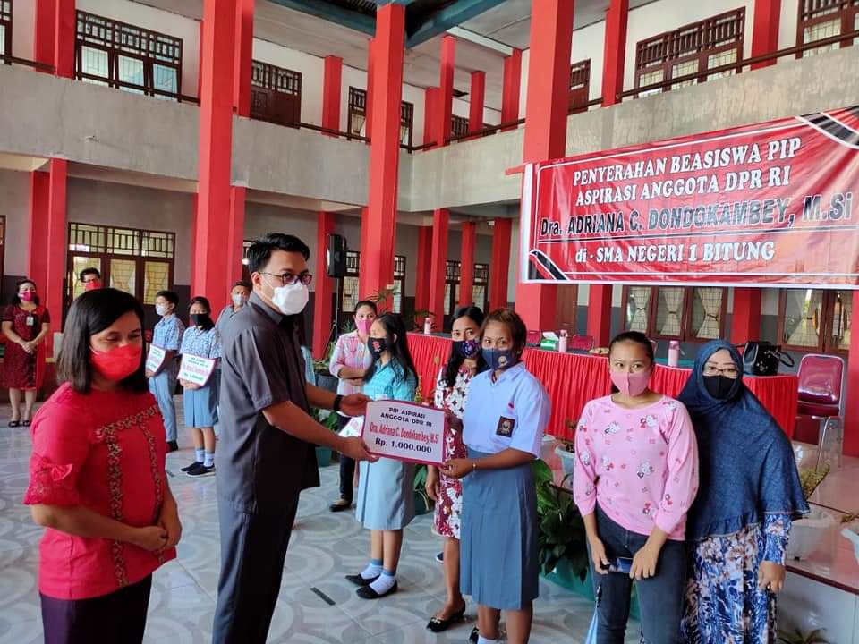 Hal ini dibuktikan, lewat pemberian aspirasi beasiswa PIP yang dilakukan oleh Anggota DPR-RI Adriana Dondokambey SE, melalui anggota DPRD Kota Bitung yang juga Ketua Fraksi PDI Perjuangan yaitu Geraldi Efraim Mathias Mantiri SE, di wilayah Kota Bitung, yaitu dibeberapa Sekolah Menengah Atas (SMA) dan Sekolah Menengah Kejuruan (SMK).