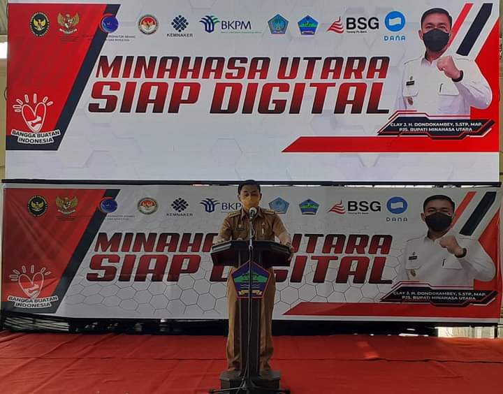 Airmadidi, Sulutreview.com – Penjabat sementara (Pjs) Bupati Clay Dondokambey SSTP MAP mencanangkan “Minahasa Utara Siap Digital” bagi pengusaha Usaha Mikro Kecil dan Menengah (UMKM) di pendopo perkantoran bupati, Selasa (17/11/2020).