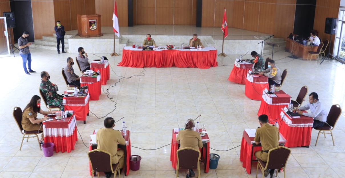 Tondano, Sulutreview.com – Bupati Minahasa Dr. Ir. Royke Octavian Roring MSi, IPU, ASEAN.Eng memimpin langsung Rapat Forum Komunikasi Pimpinan Daerah (Forkopimda) Plus, di BPU Tondano Senin (23/11/2020).