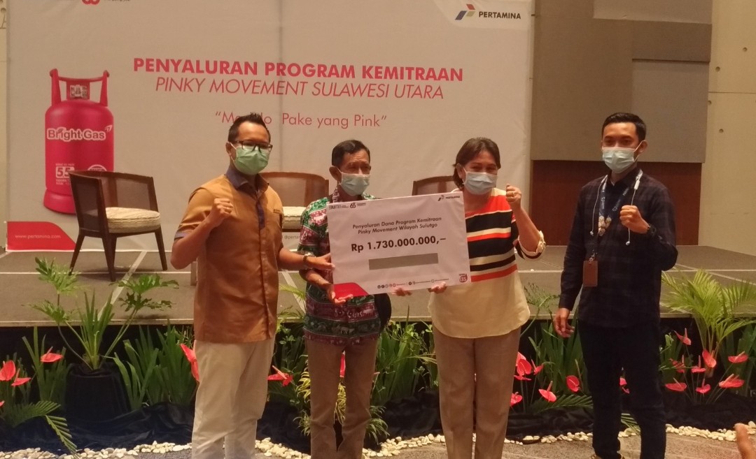 Bantuan disalurkan kepada 37 mitra UMKM outlet LPG dan UMKM lainnya di wilayah Sulawesi Utara dan Gorontalo (Sulutgo), di hotel Four Point Manado, Selasa (24/11/2020).