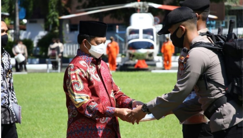 Manado, Sulutreview.com – Menteri Dalam Negeri (Mendagri) RI Tito Karnavian memimpin langsung jalannya Apel Pergeseran Pasukan ke Polres/Ta Jajaran Polda Sulut dalam rangka Pengamanan Pilkada Serentak Tahun 2020 Tahap Pemungutan Suara di Mapolda Sulut, Jumat (4/12/2020).