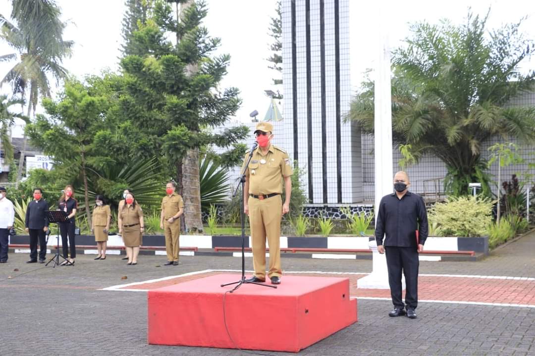 Tondano, Sulutreview. com – Bupati Dr. Ir. Royke Octavian Roring, M.Si memimpin Apel Kerja Awal Tahun 2021 pada Senin (04/01/21).