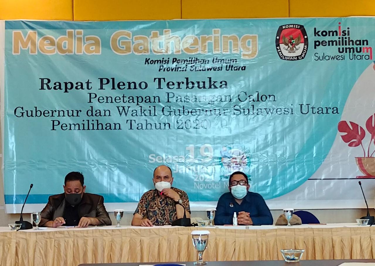 Kegiatan tersebut, dilaksanakan dalam rangka Rapat Pleno Terbuka Penetapan Pasangan Calon Gubernur dan Wakil Gubernur Sulawesi Utara Pemilihan Tahun 2020, menggelar media gathering di Grand Kawanua Convention Center, Selasa, (19/1/2021).