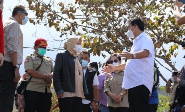 Menteri Sosial (Mensos) Tri Rismaharini, didampingi Wakil Gubernur Sulawesi Utara (Sulut) Steven OE Kandouw meninjau sejumlah lokasi bencana banjir dan tanah longsor di sejumlah wilayah di Sulut, Rabu (20/1/2021).