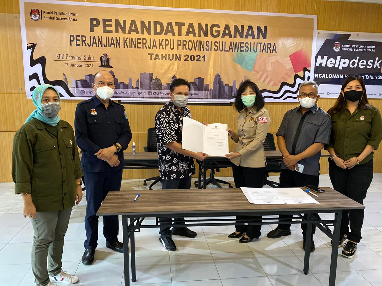 Pihak yang menandatangi PK adalah Ketua KPU Provinsi Sulawesi Utara, Ardiles Mewoh dan Sekretaris KPU Provinsi Sulut, Pujiastuti.