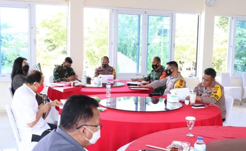 Mandolang, Sulutreview.com – Bupati Minahasa, Dr. Ir Royke Octavian Roring, M.Si bersama Wakil Bupati, Robby Dondokambey, S.Si memimpin Rapat Forkopimda Minahasa di City Extra, Desa Kalasey Satu Kecamatan Mandolang.