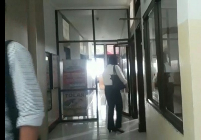 Saat turun dari mobil, KLR dengan mengunakan masker warna putih serta baju warna putih dan celana kain warna hitam yang ditemani seorang Ajudan Polisi langsung masuk, melalui pintu samping kiri Kantor Kejaksaan Bitung.