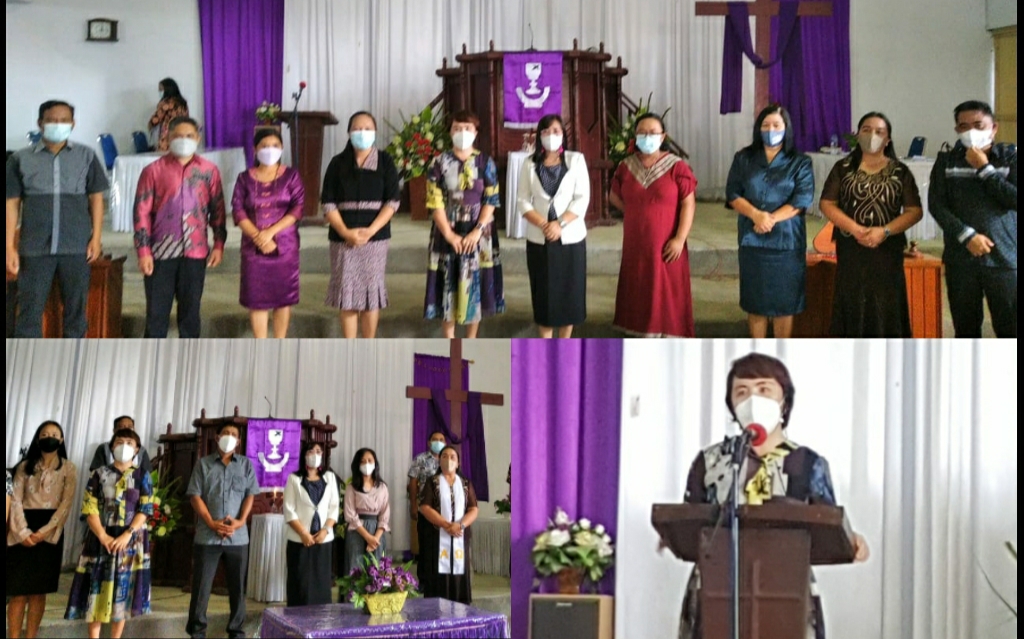 Mitra, SULUTREVIEW – Kepala Kecamatan (Camat) Ratahan Timur Meyta Ompi, beribadah bersama jemaat GMIM Nazareth Wongkai, Minggu (07/03/2021).