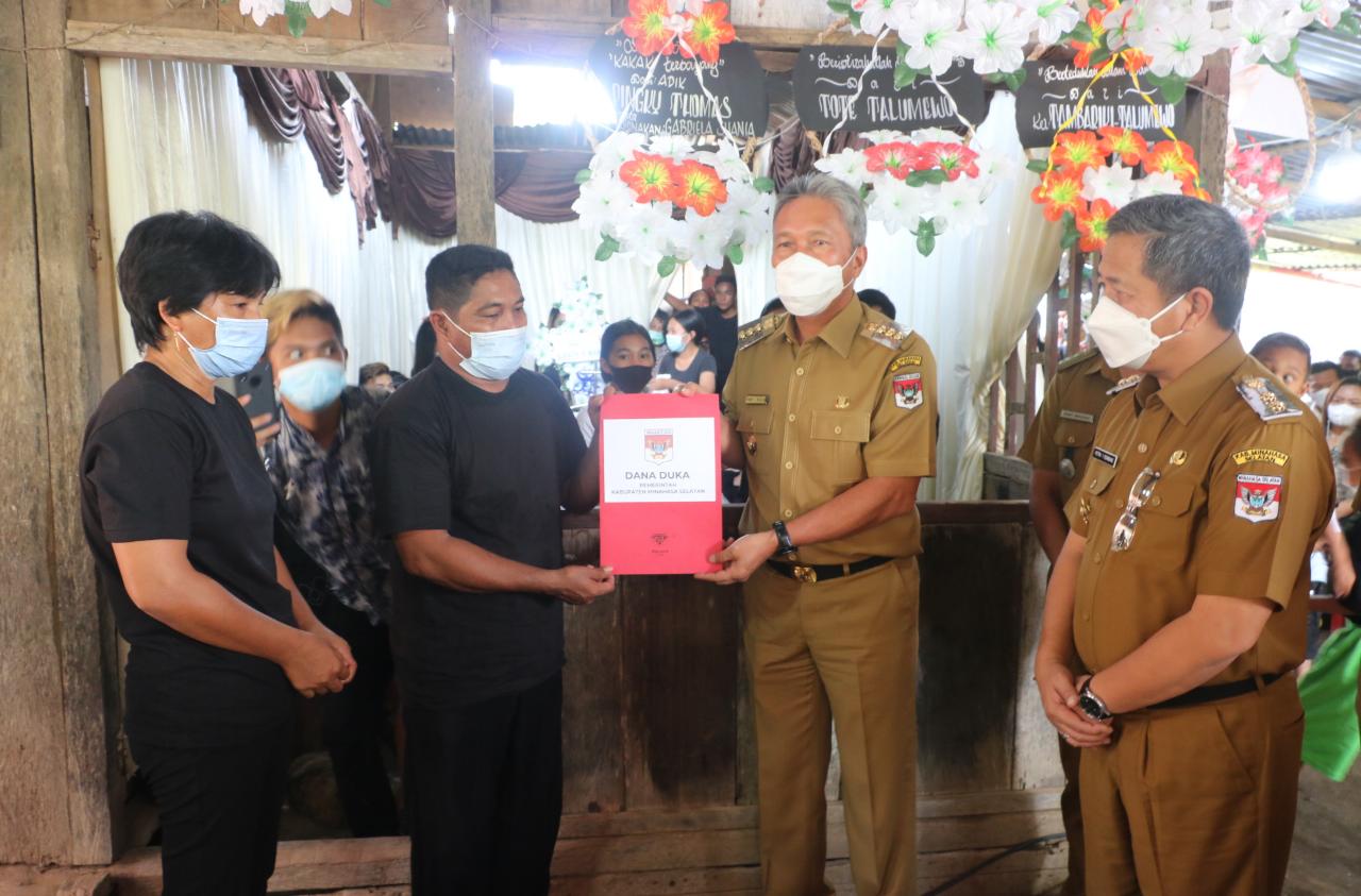 Awal penyaluran dilakukan di rumah duka di Kelurahan Kawangkoan Bawang Kecamatan Amurang Barat. Bupati Franki D Wongkar SH dan Wabup Pdt Petra Y Rembang MTh menyerahkan santunan dana duka kepada keluarga yang berduka atas nama almarhum Jendri Thomas.