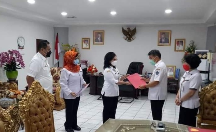 Penyerahan surat perintah turut disaksikan Kepala Badan Kepegawaian Daerah Dr Femmy Suluh.(eda)