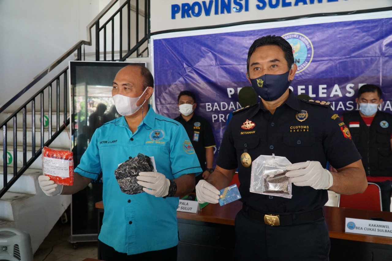 Manado,Sulutreview.com – Kanwil Bea Cukai Sulawesi Bagian Utara (Sulbagtara) bekerja sama dengan BNNP Sulut kembali memberantas peredaran narkoba di Provinsi Sulawesi Utara (Sulut).
