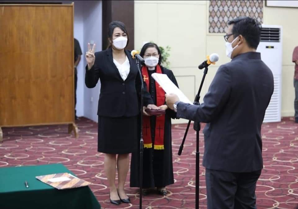 Kartika dilantik oleh Wakil Gubernur Sulut Steven OE Kandouw-Tanos, melalui pengambilan sumpah dan janji di ruang Tumbelaka, Kamis (24/06/2021).